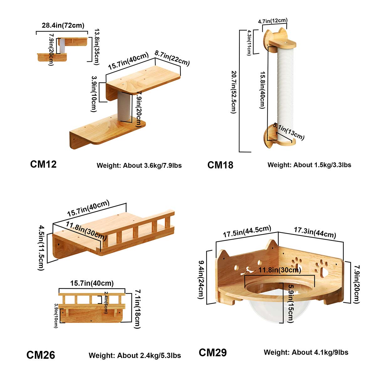 Furniture Weight: Consider the weight of the cat furniture itself and the maximum weight it's designed to hold.PETOMG's cat wall products can bear a load of up to 22.5kg.