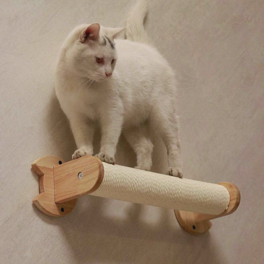 PETOMG Cat Scratching Post, Cat Wall Furniture, Cat Shelf | Rubberwood