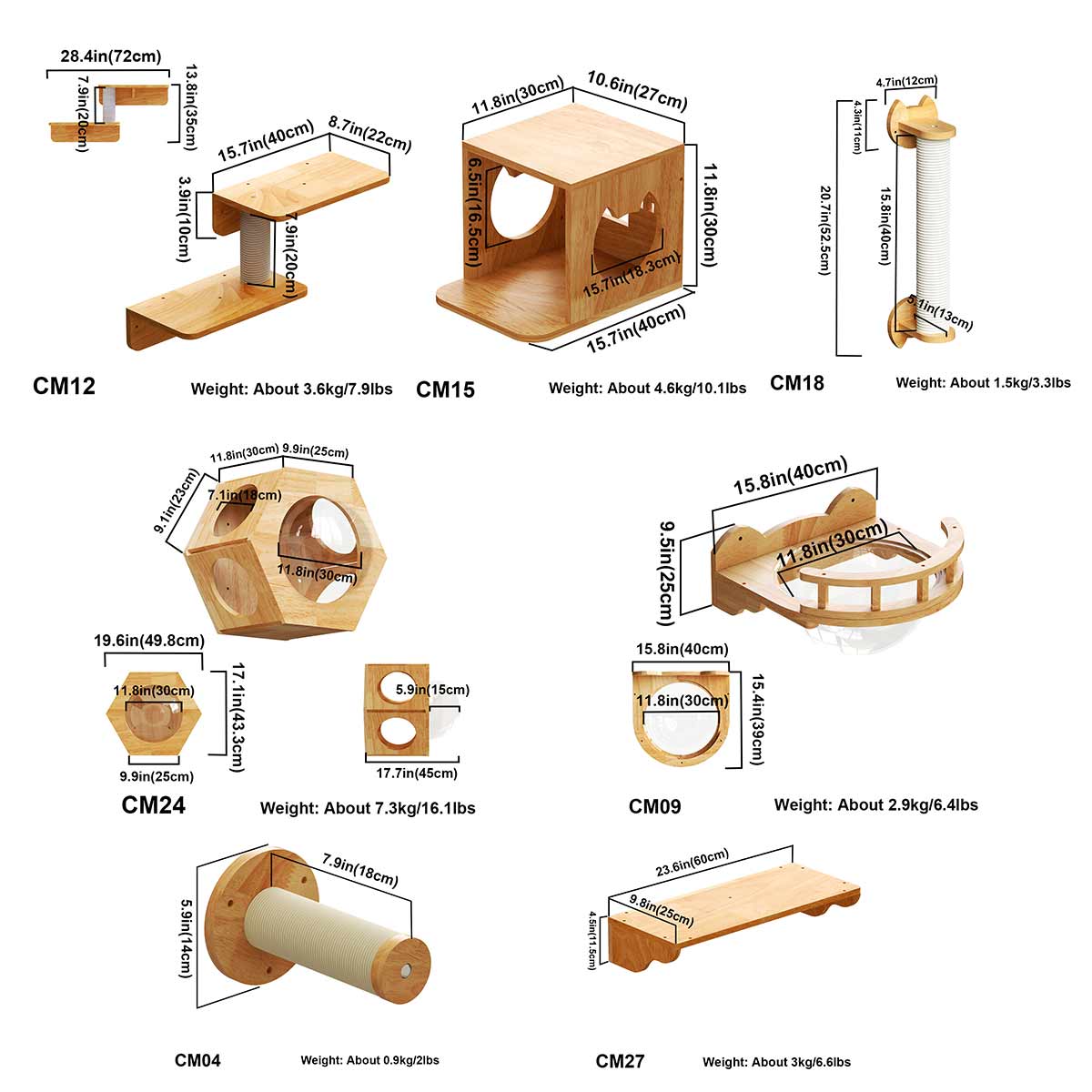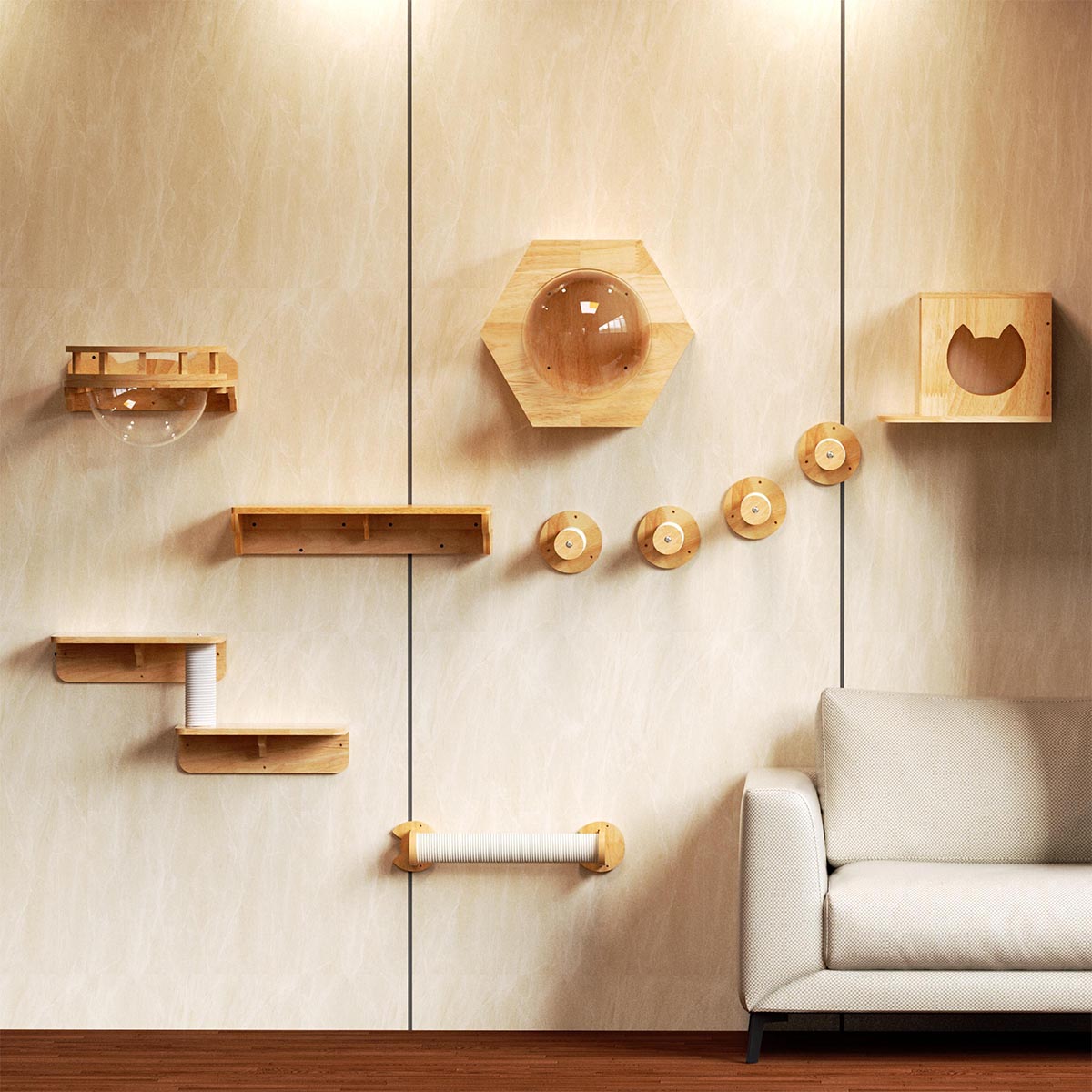 Furniture Weight: Consider the weight of the cat furniture itself and the maximum weight it's designed to hold.PETOMG's cat wall products can bear a load of up to 22.5kg.