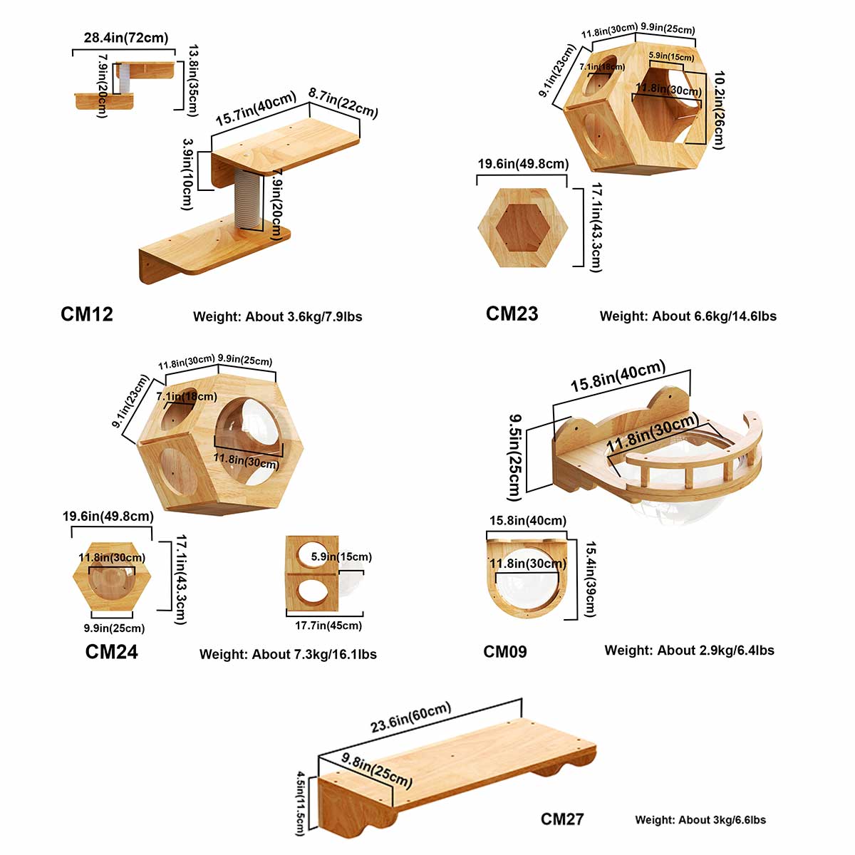 Furniture Weight: Consider the weight of the cat furniture itself and the maximum weight it's designed to hold.PETOMG's cat wall products can bear a load of up to 22.5kg.