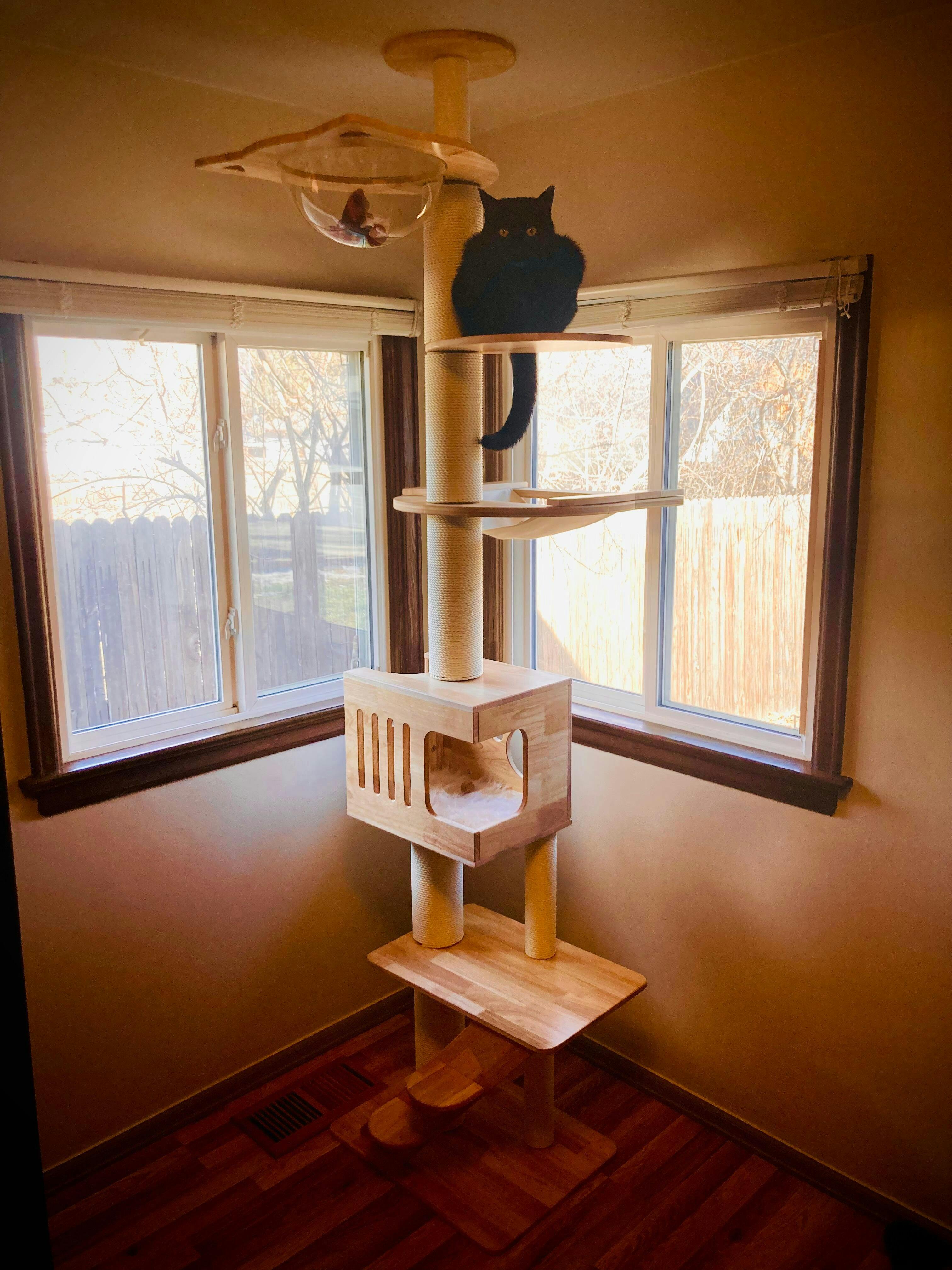 Upgrade your home decor while providing an exciting and cozy space for your cat. This exquisite cat furniture is designed to accommodate both humans and pets, offering a versatile and functional furniture piece that matches your home aesthetic while keeping your cat entertained and comfortable. Order now and enjoy sharing your living space with your furry friend!