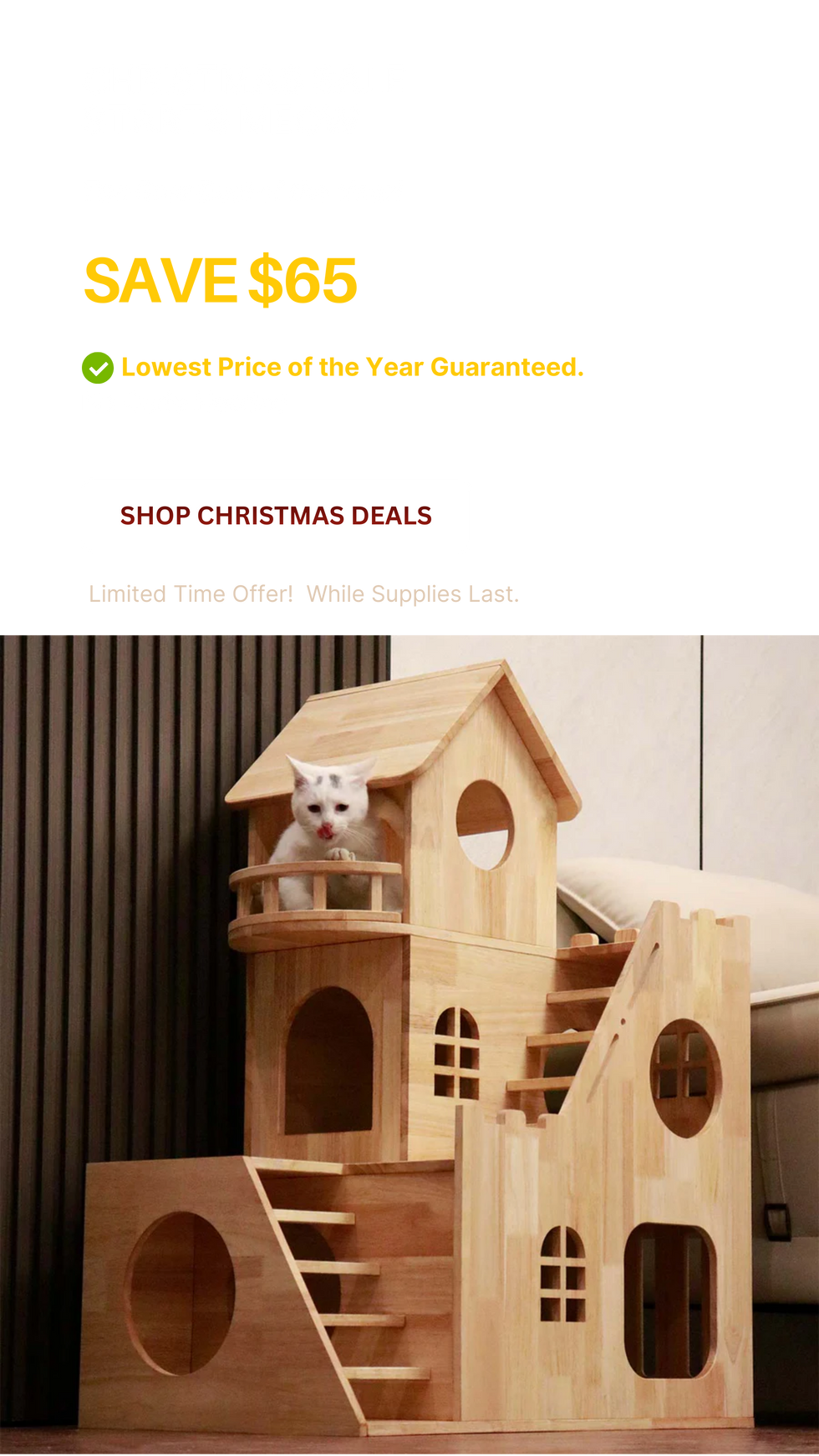 Rubberwood Cat House, Cat Condo (Castle Style) 30.1''*20''*39.4''