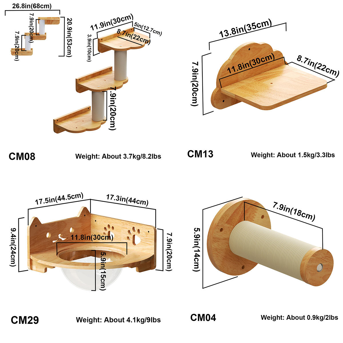 Furniture Weight: Consider the weight of the cat furniture itself and the maximum weight it's designed to hold.PETOMG's cat wall products can bear a load of up to 22.5kg/49.6lbs.