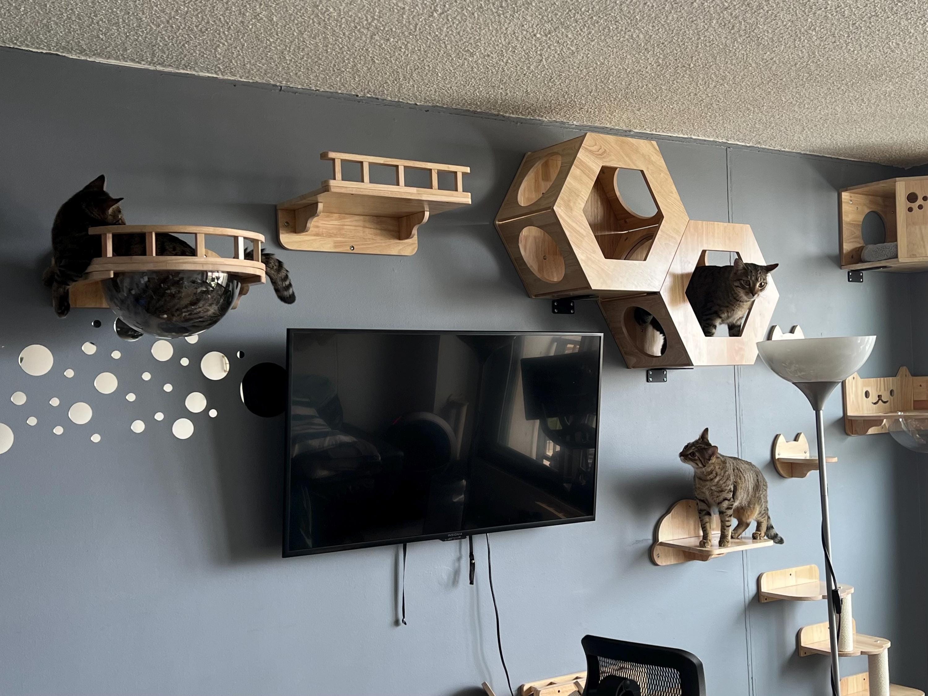 Deluxe Cat Wall Playground - Not only takes up limited wall space, but also creates an interesting play territory for cats.