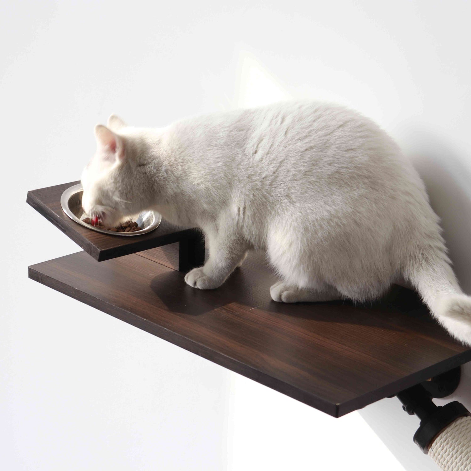 Designed with precision, our PETOMG cat shelves combine eco-friendly smoky rubber wood with durable aluminum alloy supports. These premium wall-mounted shelves are perfect for drywall and solid walls, providing a secure and stylish vertical space for your cats.