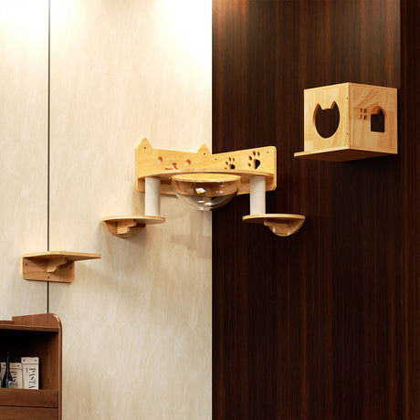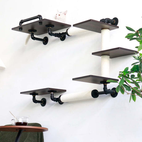 $1,032.00Unit price /Unavailable Modern Cat Wall Shelf with Scratching Posts (4PCS) | Smoky Rubber Wood
