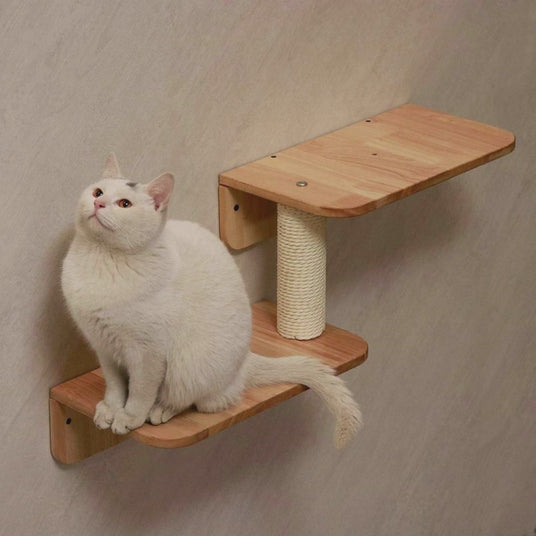 In summary, the wall-mounted cat shelf provides the perfect solution for cat owners who want to release floor space and give their cats more room to play and explore. With its sturdy, environment-friendly rubber wood construction, versatile home style, and easy-to-assemble design, it's an excellent choice for any cat owner looking for a functional, yet stylish, cat wall shelf.