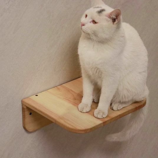 In summary, the wall-mounted cat shelf provides the perfect solution for cat owners who want to release floor space and give their cats more room to play and explore. With its sturdy, environment-friendly rubber wood construction, versatile home style, and easy-to-assemble design, it's an excellent choice for any cat owner looking for a functional, yet stylish, cat wall shelf.