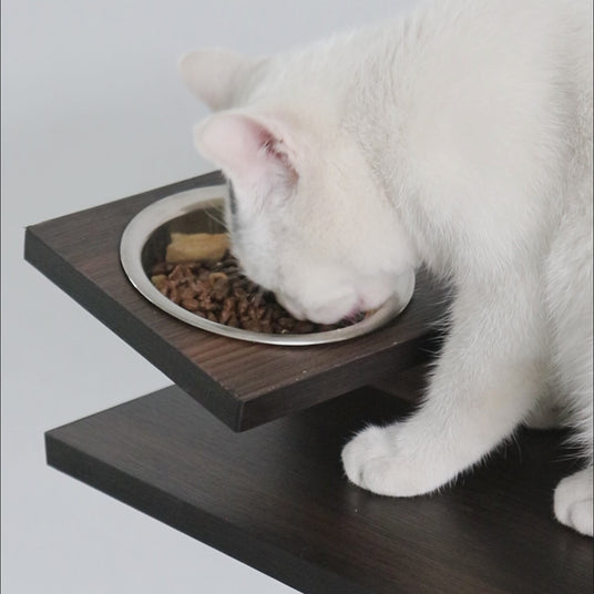 PETOMG Smoky Rubber Wood Cat Shelves | Cat Wall Shelf with Bowls