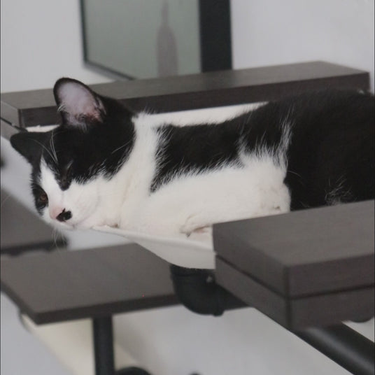 PETOMG Wall-Mounted Cat Shelf, Cat Hammock | Smoky Rubber Wood