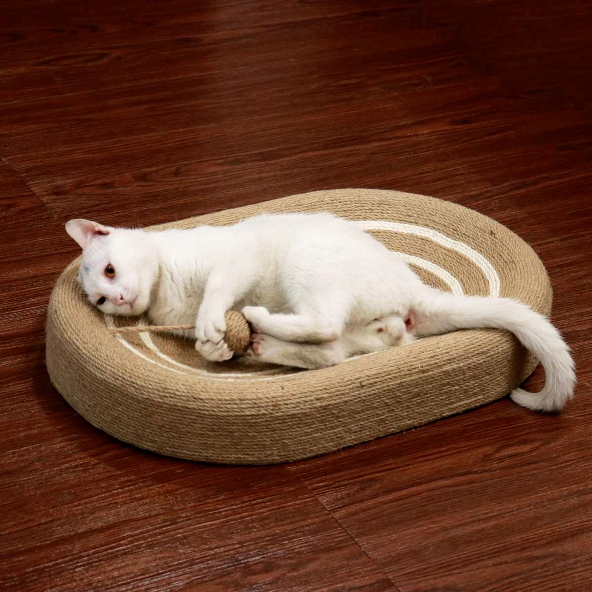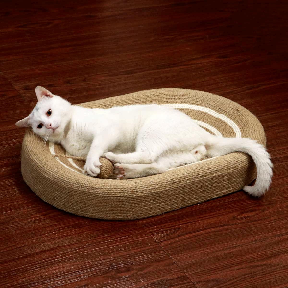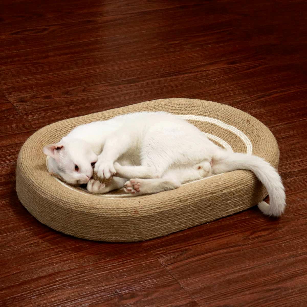 Crafted with durable natural sisal, this cozy round cat bed is more than just a place to nap—it doubles as a scratch pad, helping your feline maintain healthy claws while lounging in style.