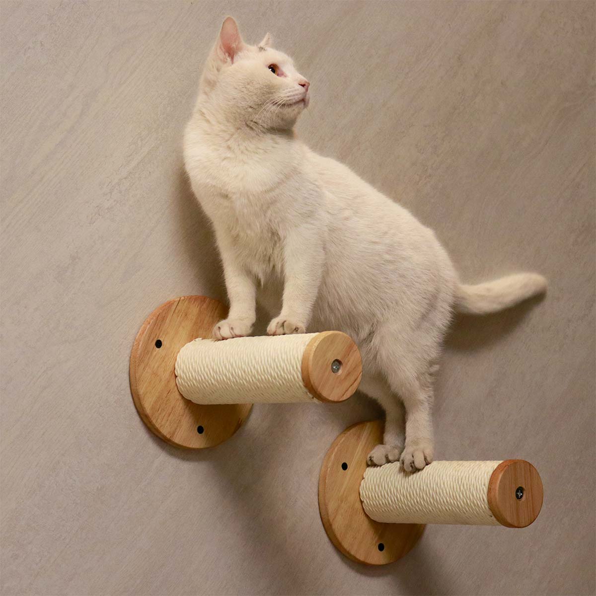 PETOMG Cat Scratching Post, Cat Wall Steps, Cat Walks (2PCS) | Rubberwood