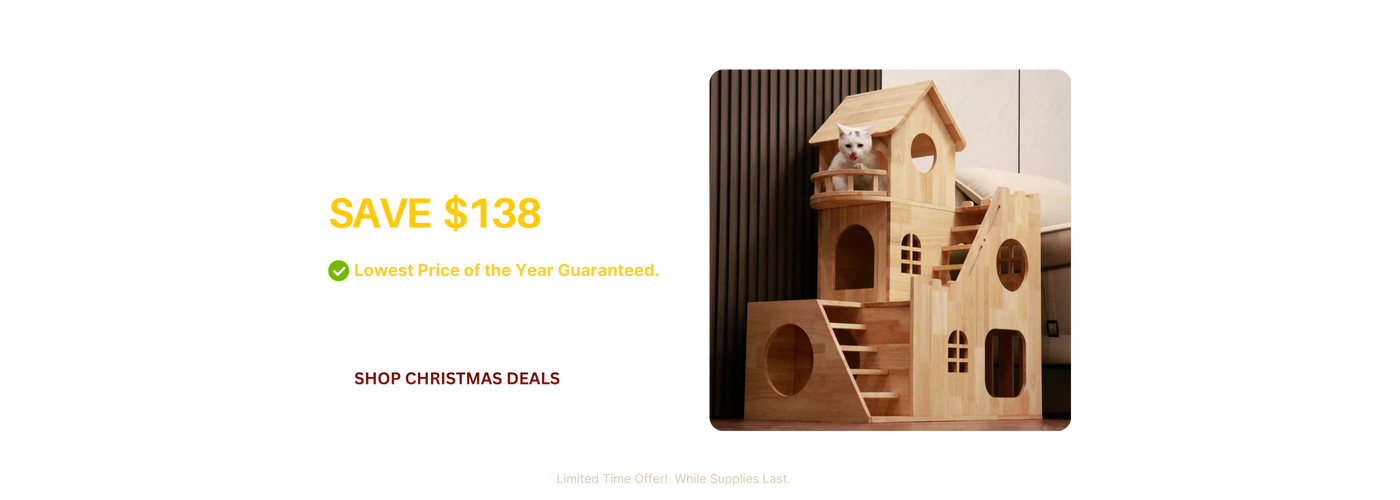 Casa para gatos de madera de caucho, condominio para gatos (estilo castillo) 76,5*51*100 cm