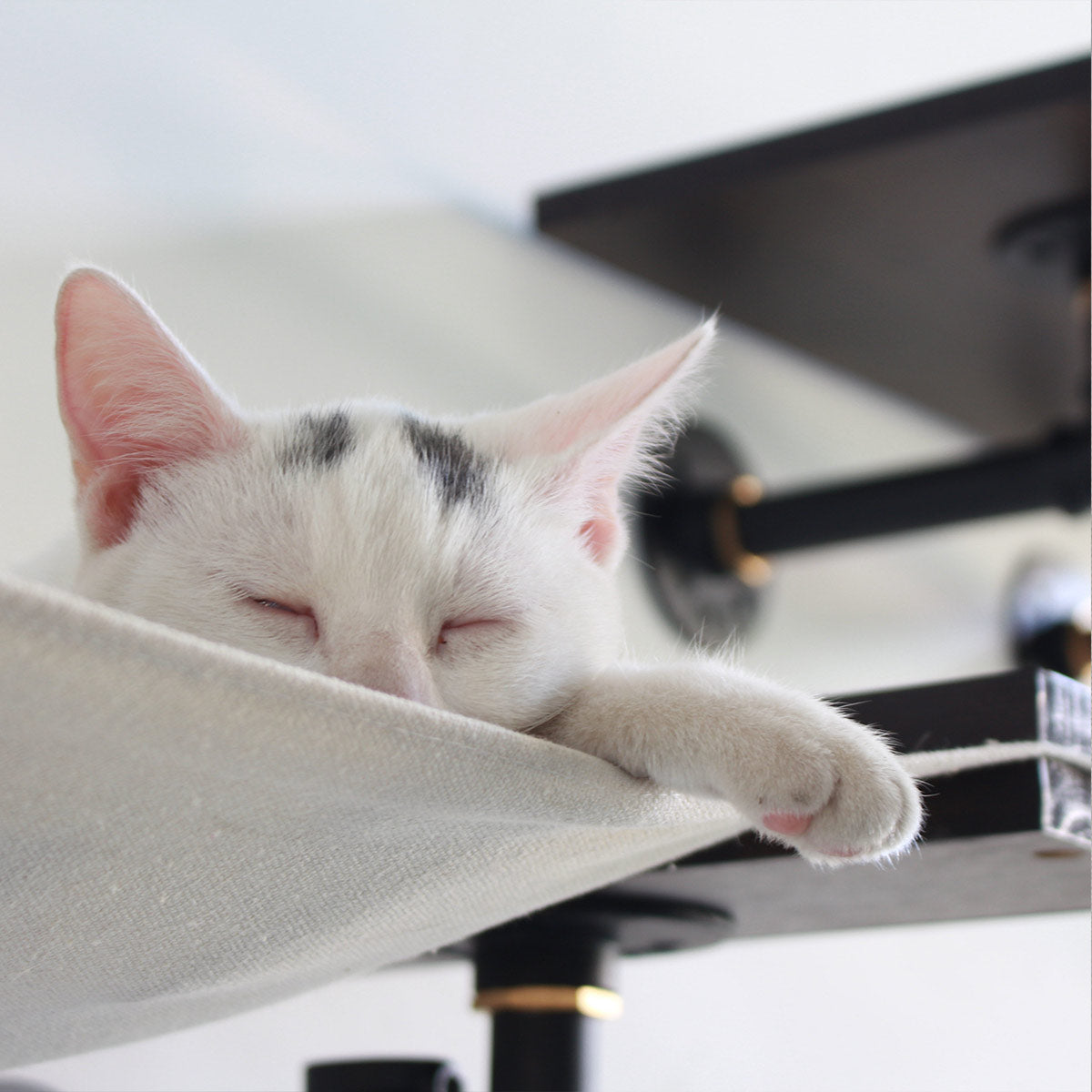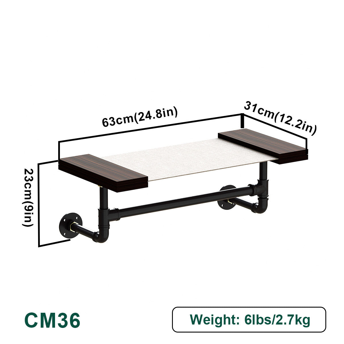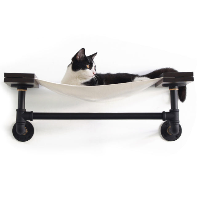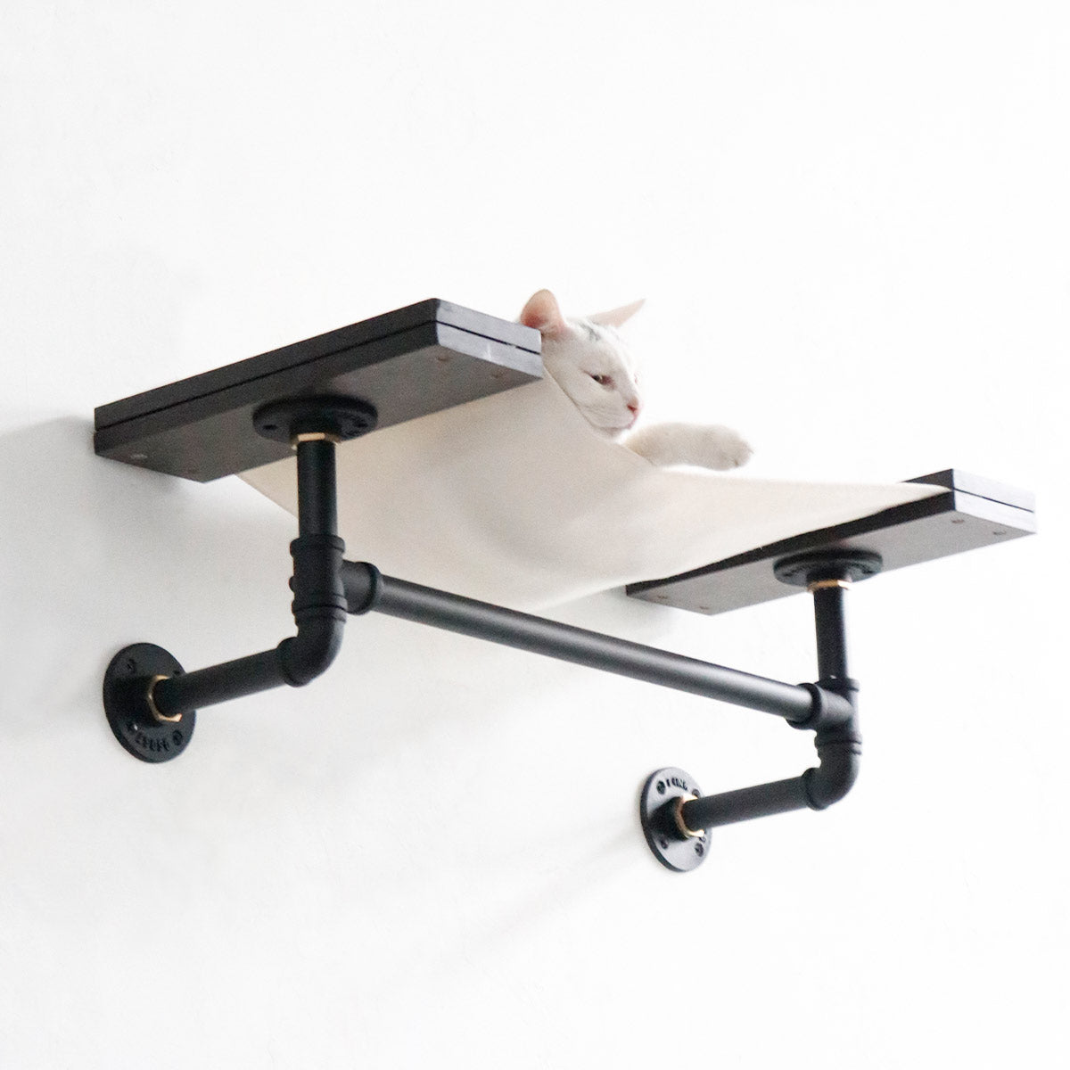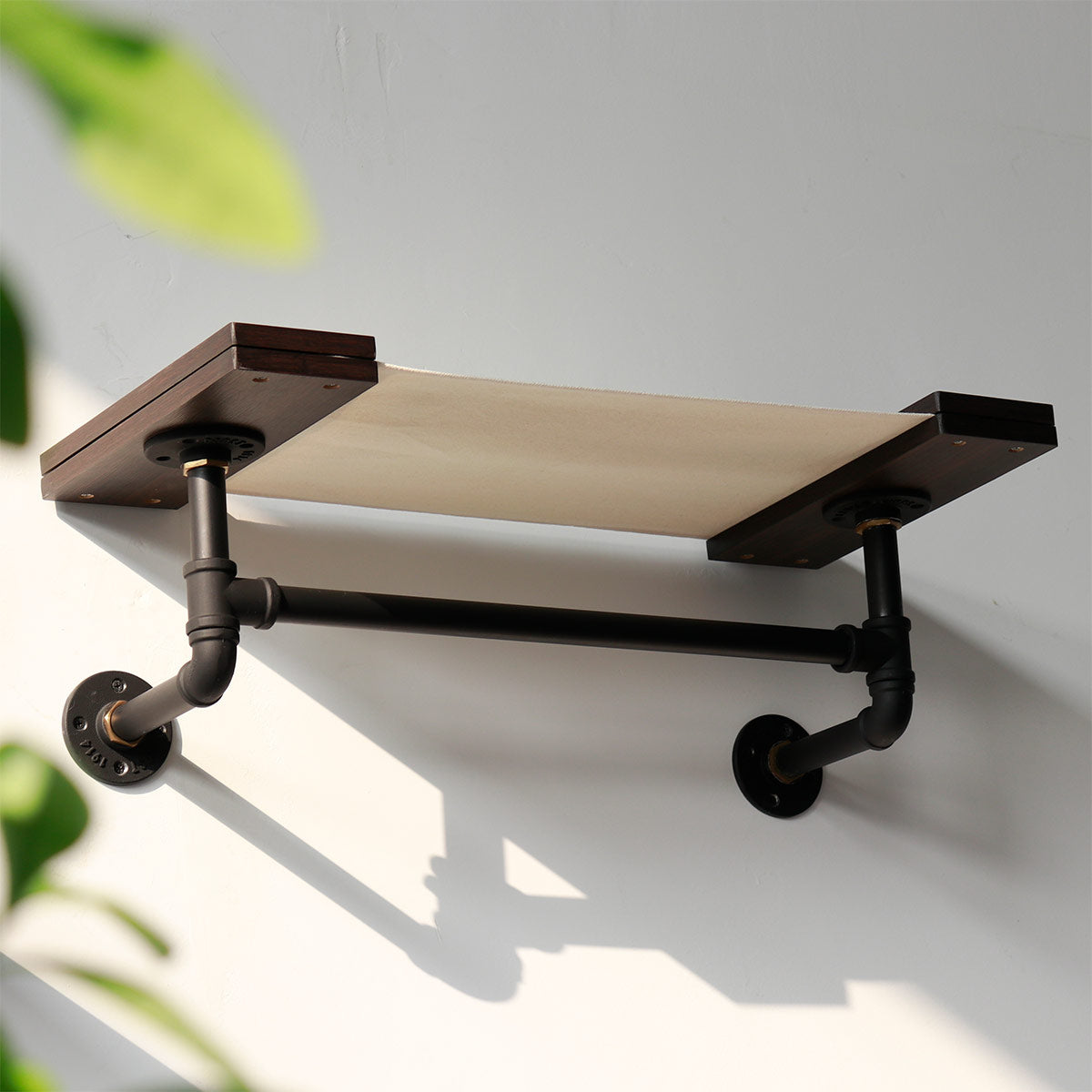 PETOMG Wall-Mounted Cat Shelf, Cat Hammock | Smoky Rubber Wood
