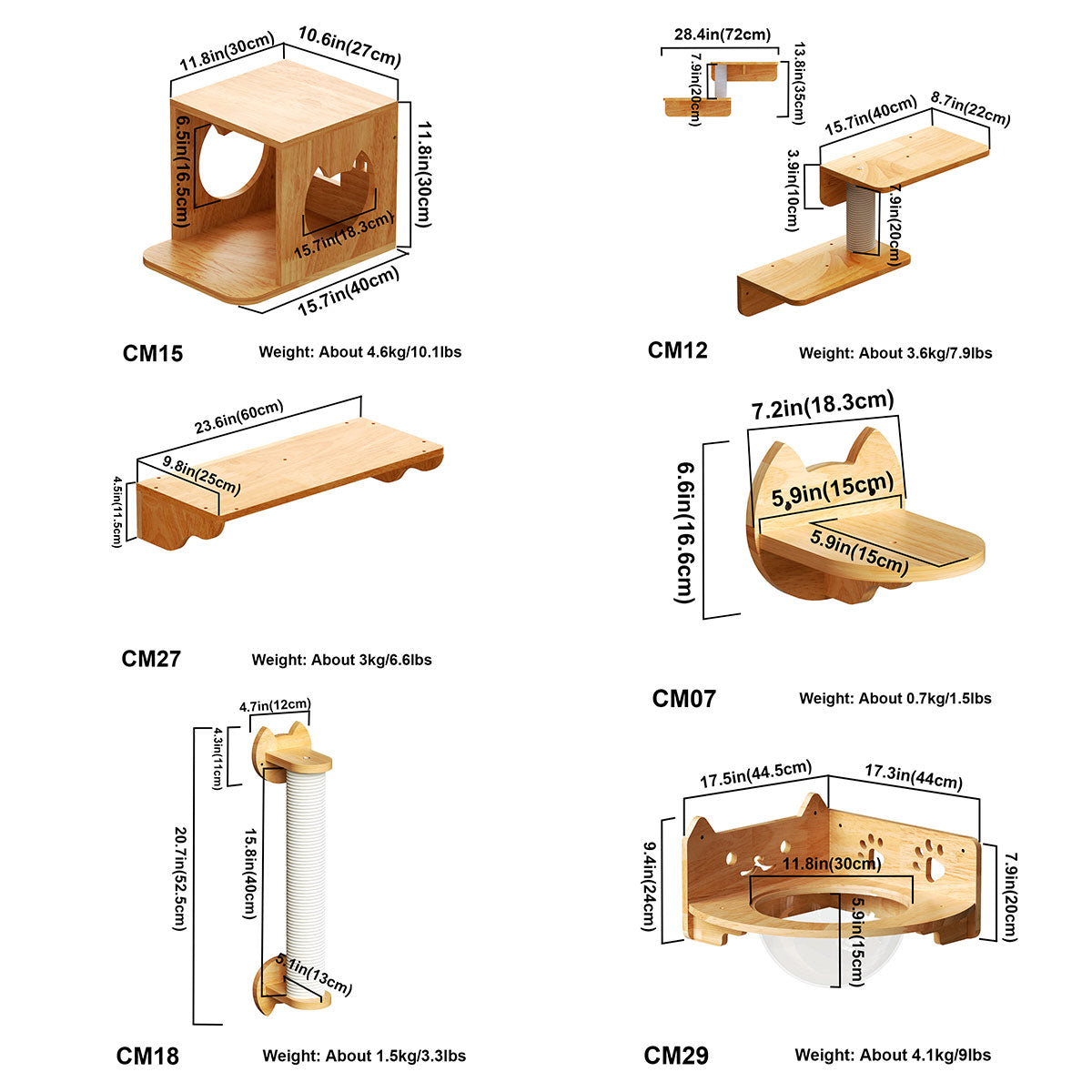 Furniture Weight: Consider the weight of the cat furniture itself and the maximum weight it's designed to hold.PETOMG's cat wall products can bear a load of up to 22.5kg/49.6lbs.