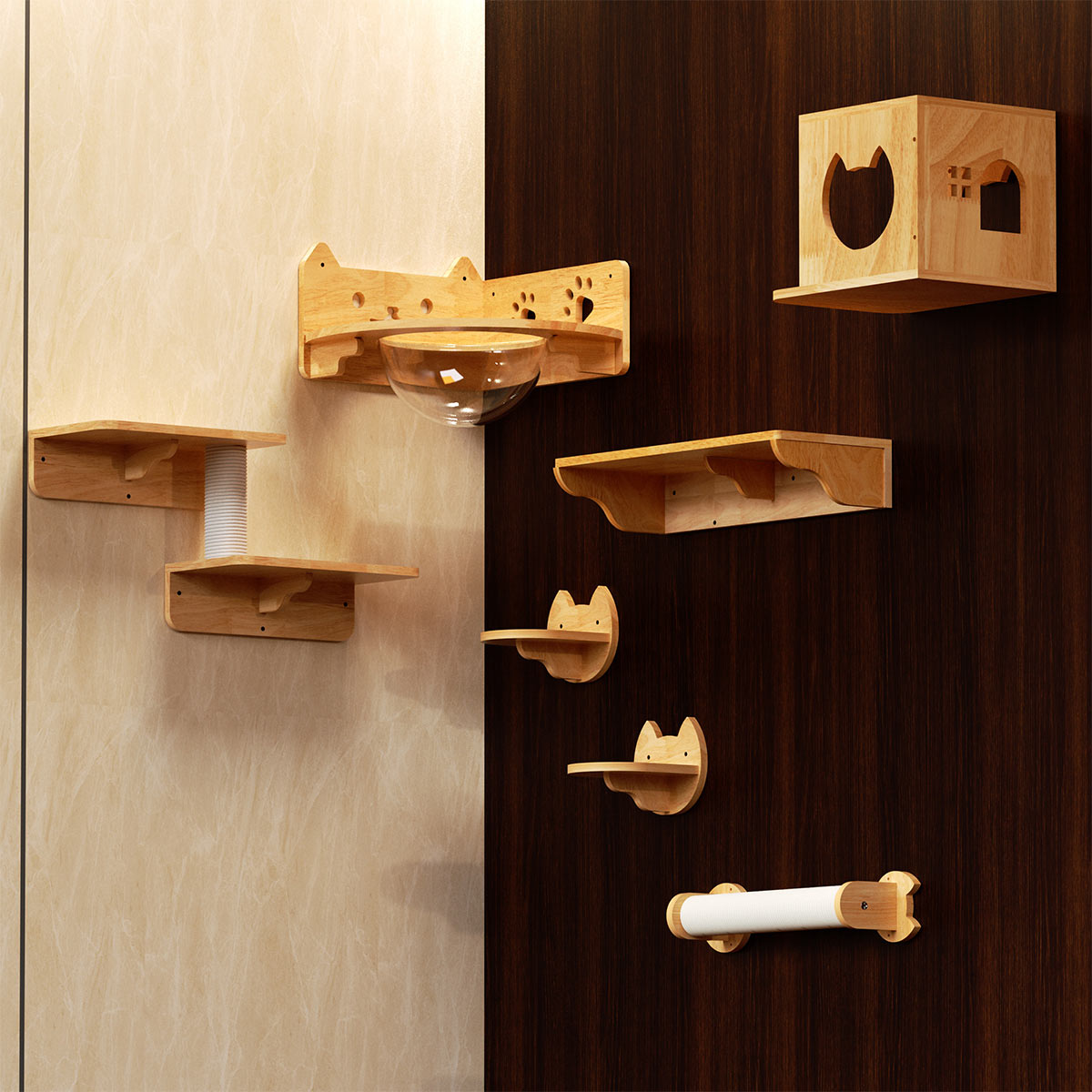 Estantes para gatos PETOMG, estantes para gatos DIY de madera de caucho | Juego de pared para gatos