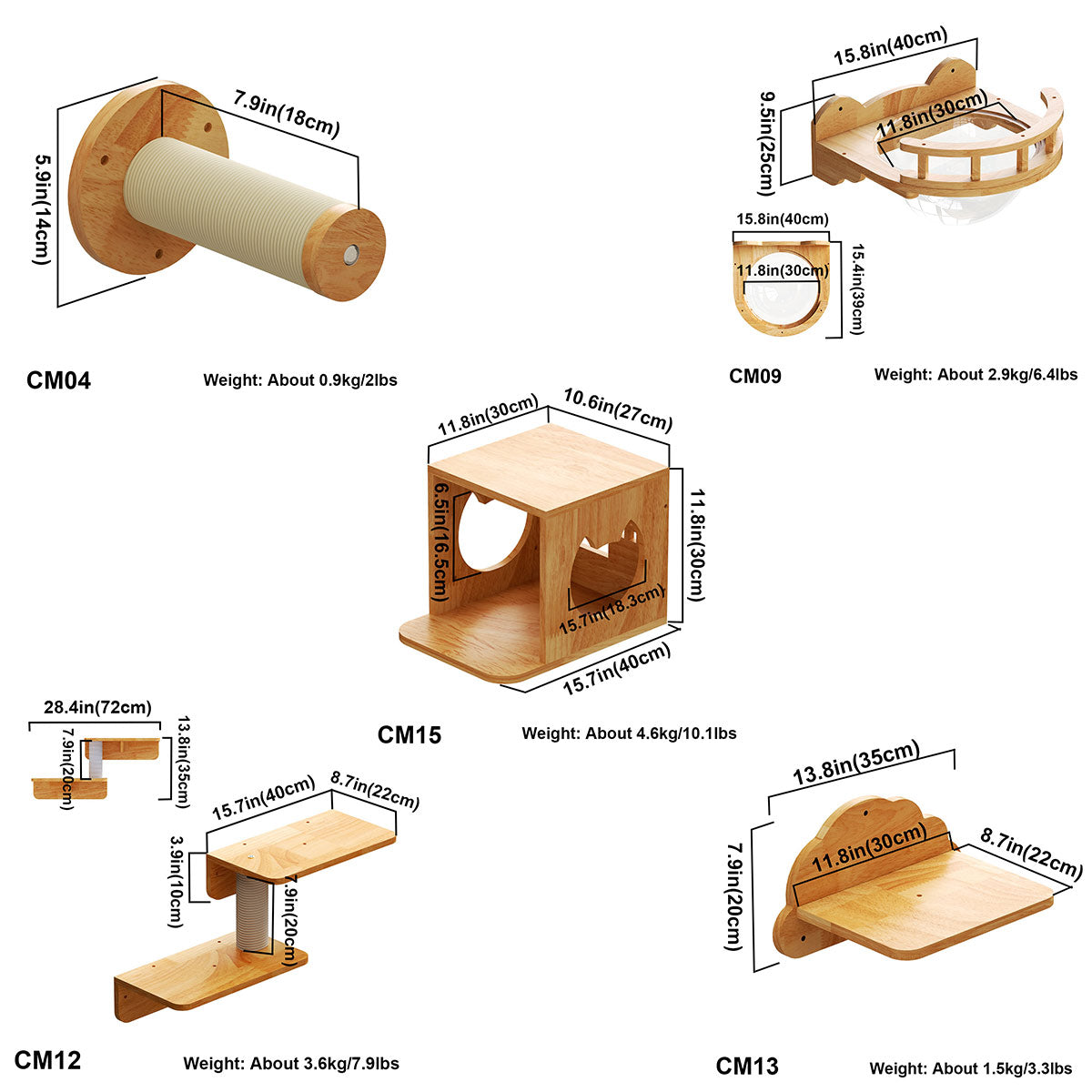 Furniture Weight: Consider the weight of the cat furniture itself and the maximum weight it's designed to hold.PETOMG's cat wall products can bear a load of up to 22.5kg/49.6lbs.