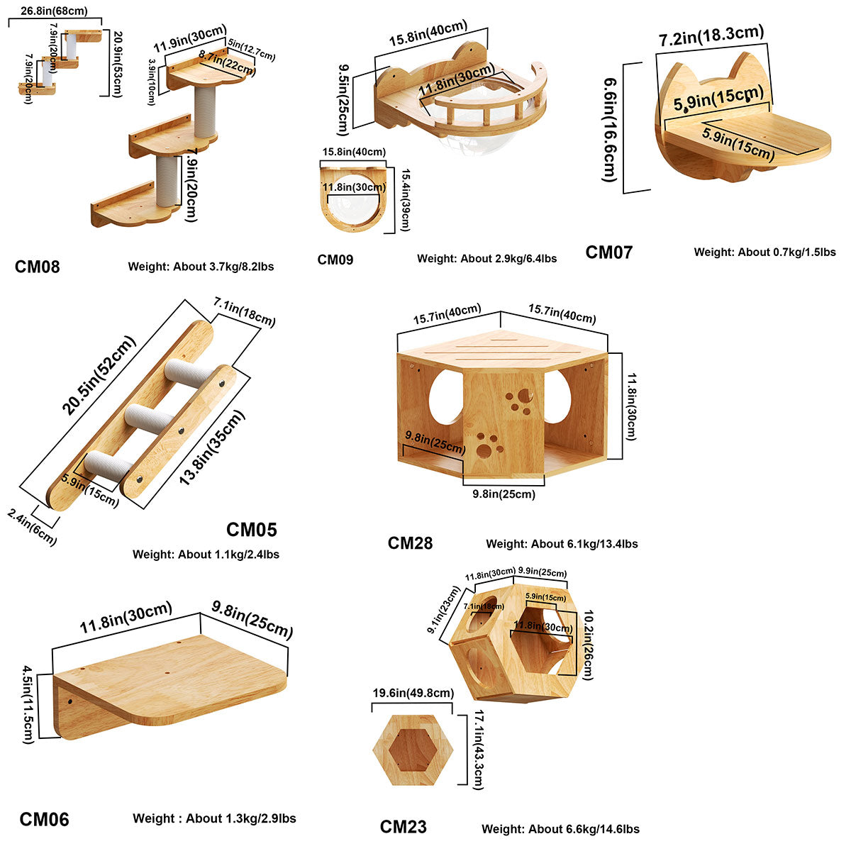 Furniture Weight: Consider the weight of the cat furniture itself and the maximum weight it's designed to hold.PETOMG's cat wall products can bear a load of up to 22.5kg/49.6lbs.