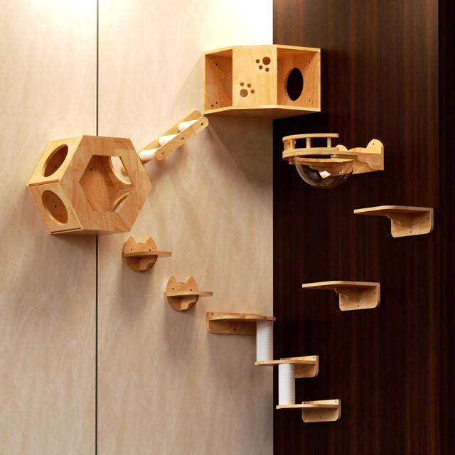 PETOMG Estantes para gatos, estante de pared para gatos DIY, paseos para gatos | Juego de pared para gatos | Madera de caucho