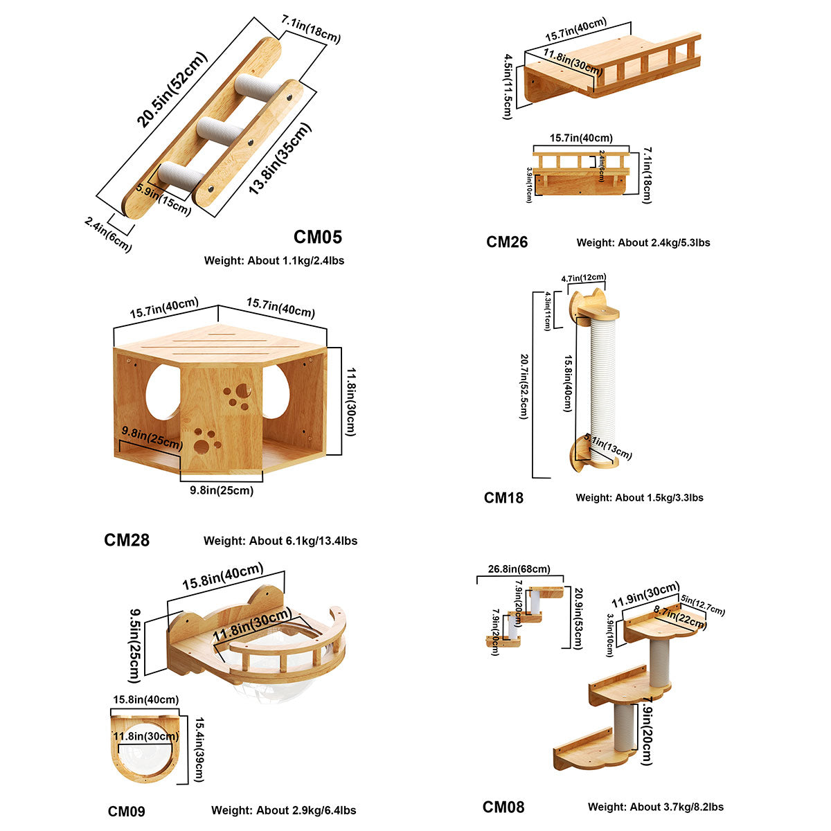 Furniture Weight: Consider the weight of the cat furniture itself and the maximum weight it's designed to hold.PETOMG's cat wall products can bear a load of up to 22.5kg/49.6lbs.