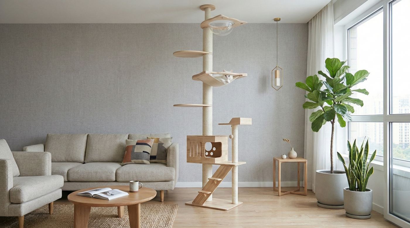 Odorless, eco-friendly, and non-toxic wood, offering durability that ensures your cat furniture can accompany your feline for a lifetime.