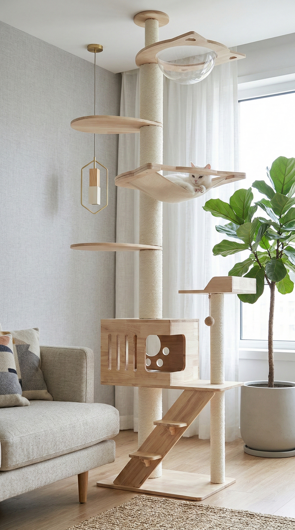 The multi-level open platform combined with a cat bed and scratching post design makes every step of climbing enjoyable for your cat.