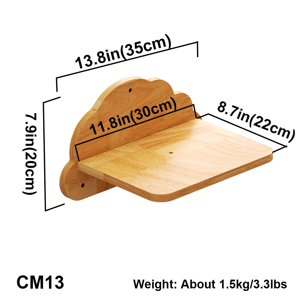 En resumen, el estante para gatos montado en la pared ofrece la solución perfecta para los dueños de gatos que desean liberar espacio en el piso y darles a sus gatos más espacio para jugar y explorar. Con su construcción de madera de caucho resistente y respetuosa con el medio ambiente, su estilo hogareño versátil y su diseño fácil de montar, es una excelente opción para cualquier dueño de gato que busque un estante de pared para gatos funcional pero elegante.