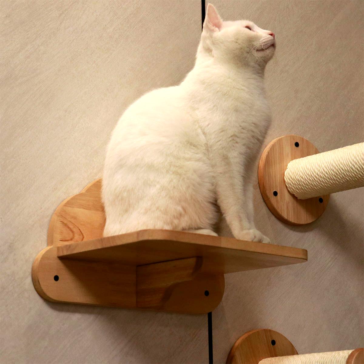 PETOMG Escalones de pared para gatos, estante para gatos, paseos para gatos, escalera para gatos | Madera de caucho
