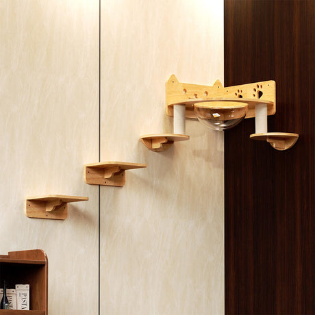 PETOMG DIY Cat Shelves, Rubberwood Cat Wall Furniture| Cat Wall Mounted Set