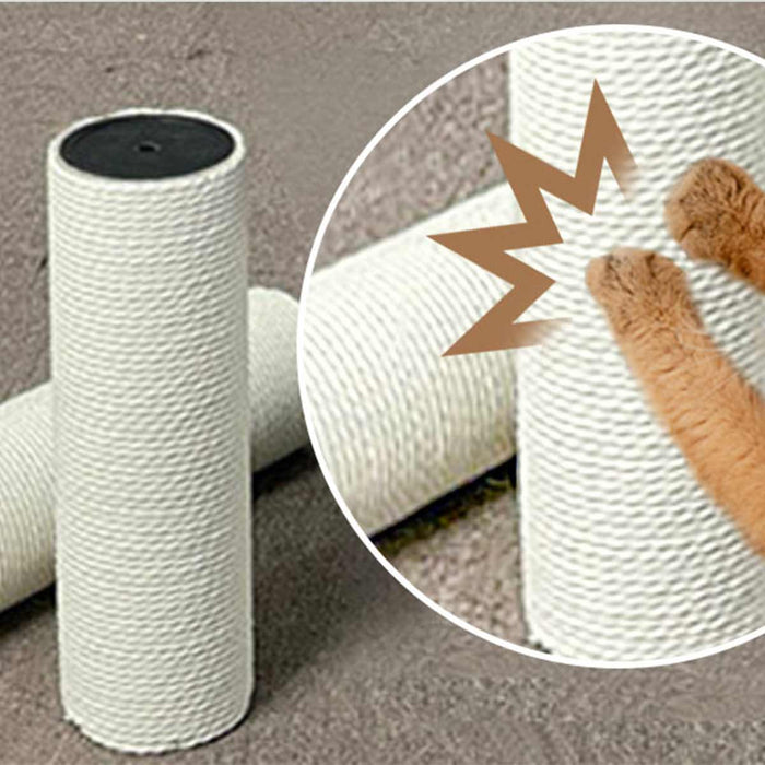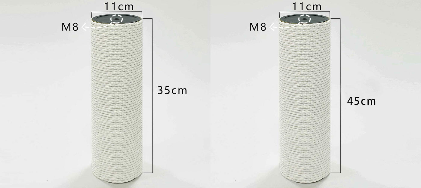 • Vahvuus ja paksuus: Kissan raapimispylväissämme käytetään 6 mm paksua voimapaperiköyttä materiaalina, joka kiedoutuu tiukasti tangon ympärille, joka on vahva ja naarmuuntumaton. Leveämmällä halkaisijalla, 11 cm, tämä pylväs on erittäin vakaa eikä heilu osana tee-se-itse-kissapuuta ja isojen kissojen kissatornia.