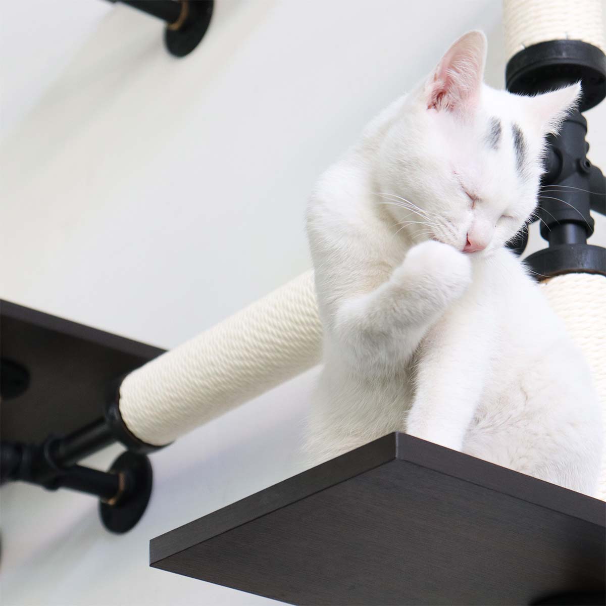 Bring minimalist elegance to your home with our PETOMG cat shelves. Crafted from sustainably sourced smoky rubber wood and reinforced with aluminum alloy, these shelves provide both style and strength. Designed for drywall and solid walls, they add vertical space for your cat to explore, without taking up valuable floor area.