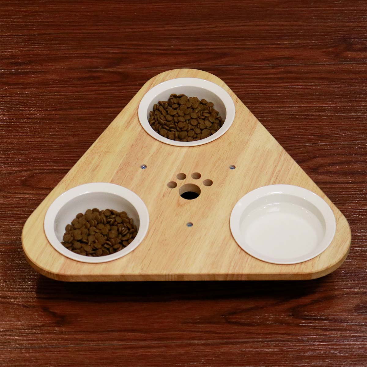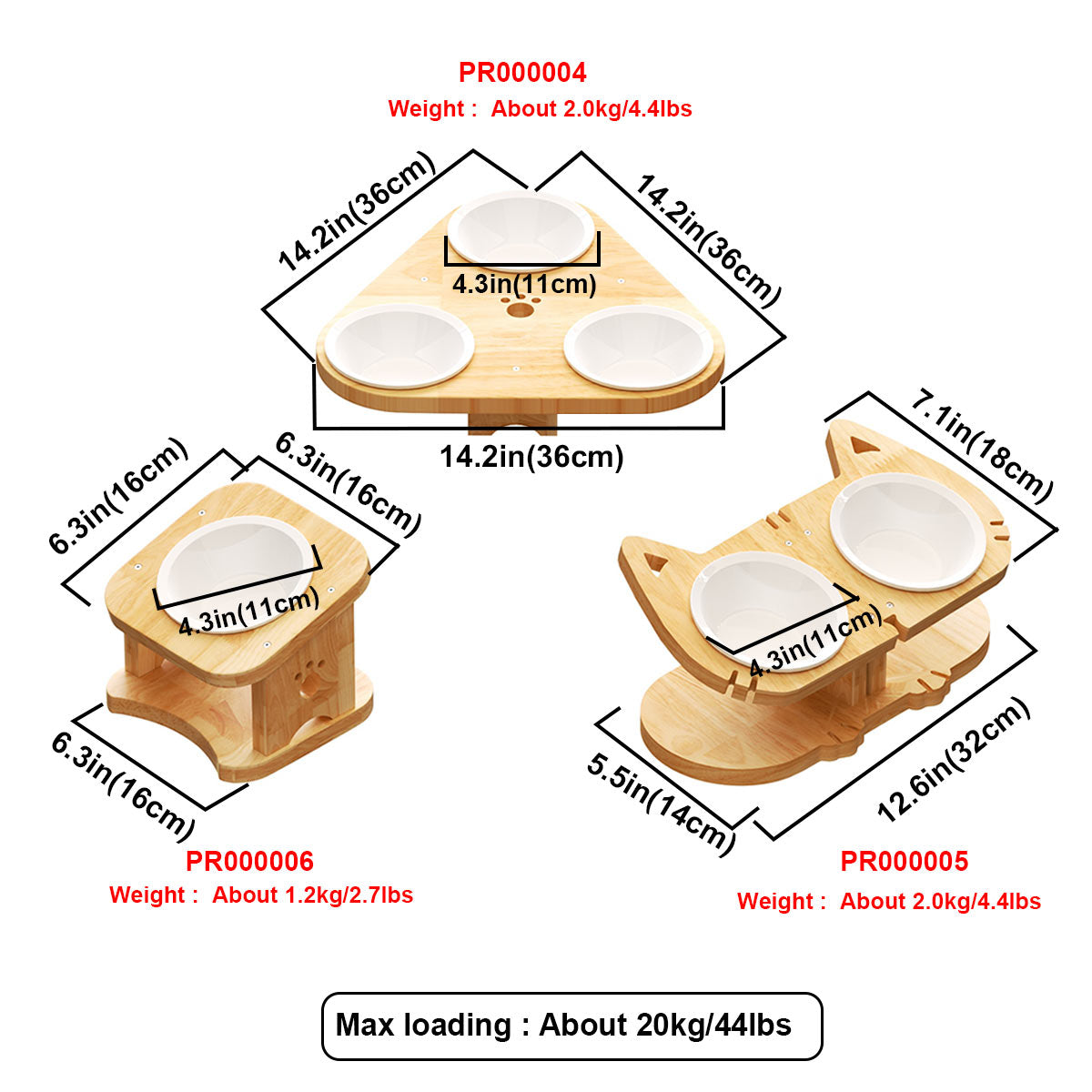 【Laadukkaat materiaalit】 - Pohja on valmistettu luonnonkumipuusta, joka on pieni ja uusi, ympäristöystävällinen, hajuton ja kemikaaliton. Kulhot ovat elintarvikelaatuista keramiikkaa, jotka estävät tehokkaasti kissojen mustaa leukaa ja bakteerien kasvua.