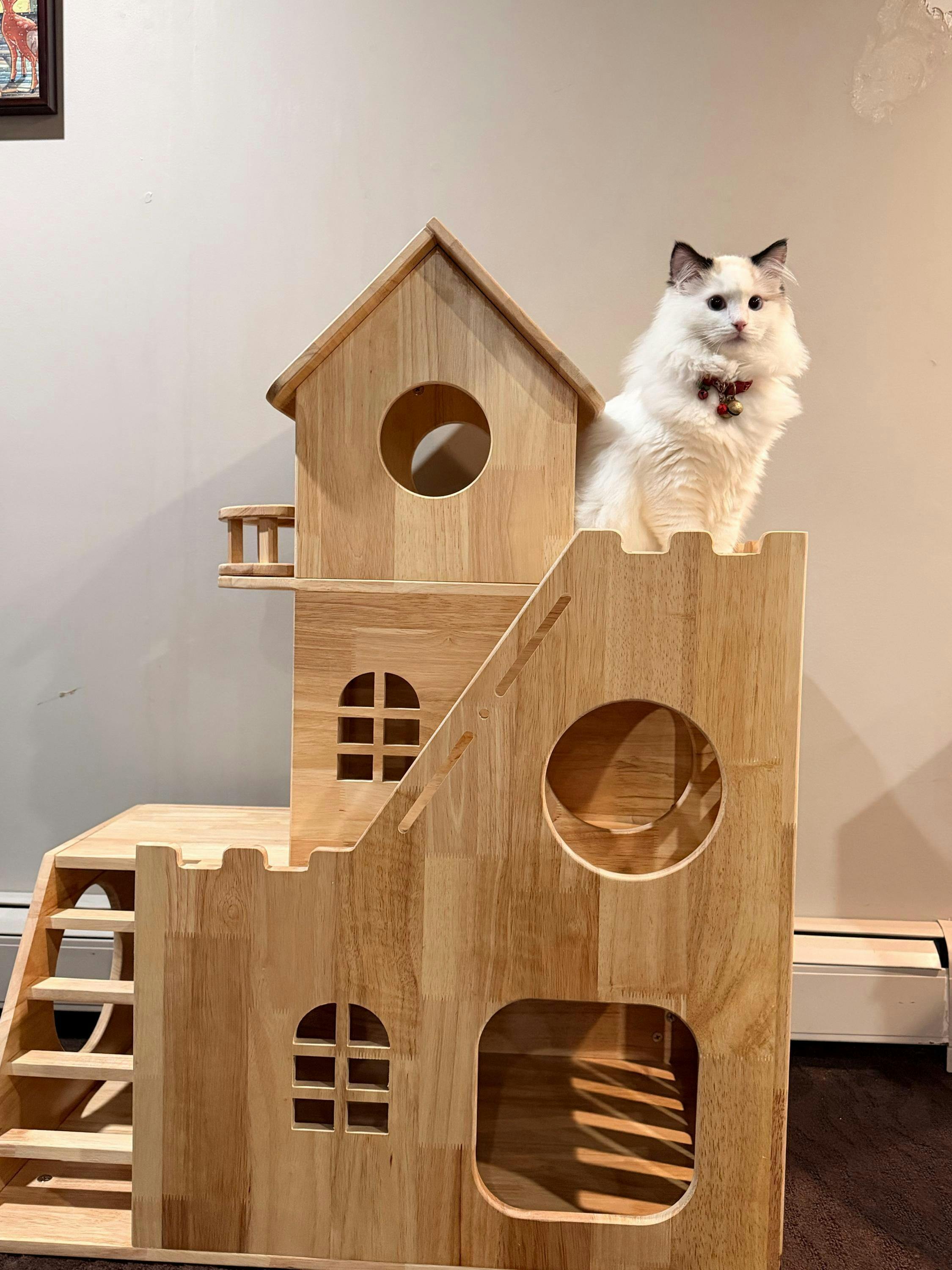 Odorless, eco-friendly, and non-toxic wood, offering durability that ensures your cat furniture can accompany your feline for a lifetime.