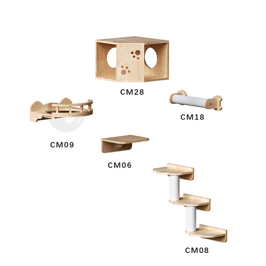 【✨Durability and versatile】Real wood cat wall playground, neutral tone, versatile style, the products can be based on any combination of indoor space with, very easy to integrate into the overall home environment. Not only a cat product, but also a home decor.
