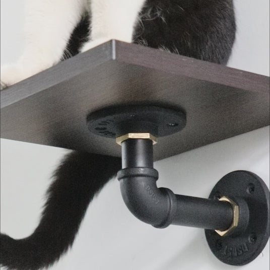 The Smoky Rubberwood Perch is an essential addition for any cat-friendly home, offering a sturdy and stylish platform made from smoked rubberwood, supported by industrial black piping. This simple yet elegant shelf is perfect for your cat to rest, play, or keep an eye on the household from a lofty view.