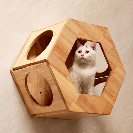 Hexagon Cat Shelves, Wall Mounted Cat Furniture | Rubber Wood