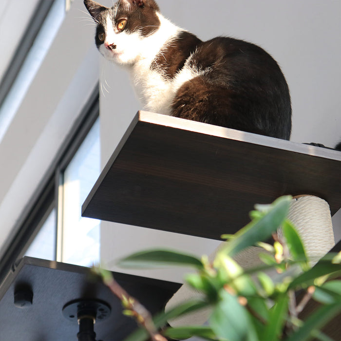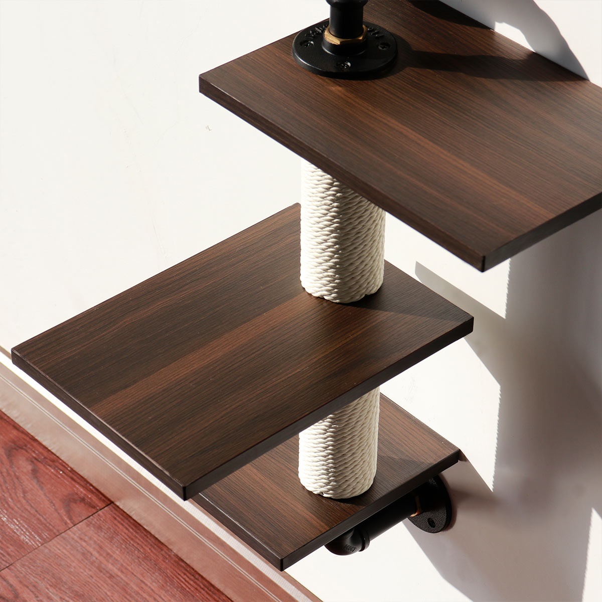 Designed with precision, our PETOMG cat shelves combine eco-friendly smoky rubber wood with durable aluminum alloy supports. These premium wall-mounted shelves are perfect for drywall and solid walls, providing a secure and stylish vertical space for your cats.
