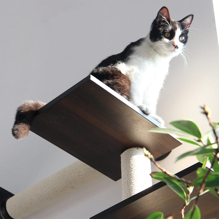 Modern Cat Wall Shelf with Scratching Posts (4PCS) | Smoky Rubber Wood