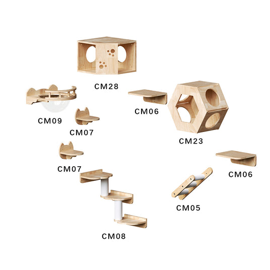 【✨Durability and versatile】Real wood cat wall playground, neutral tone, versatile style, the products can be based on any combination of indoor space with, very easy to integrate into the overall home environment. Not only a cat product, but also a home decor.