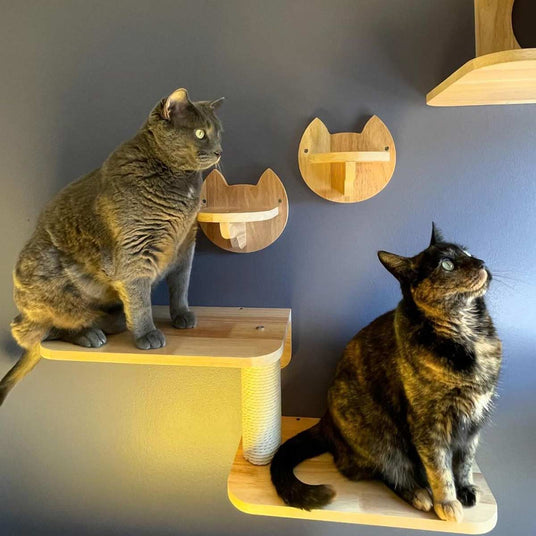 Choose from a variety of cat wall furniture like our Cat shelves, Cat hammocks, Scratching posts, Cat steps, Lookout platforms, and more. They can be modularly connected to perfectly fit your space. Take your cat’s activity area to new heights while saving valuable floor space.