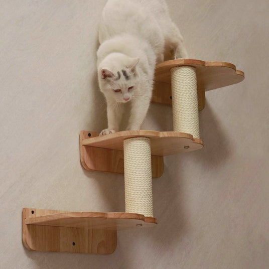 PETOMG Cat Wall Steps, Cat Shelf, Cat Ladder, Cat Climbers for Walls| Rubberwood