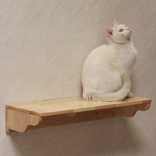 In summary, the wall-mounted cat shelf provides the perfect solution for cat owners who want to release floor space and give their cats more room to play and explore. With its sturdy, environment-friendly rubber wood construction, versatile home style, and easy-to-assemble design, it's an excellent choice for any cat owner looking for a functional, yet stylish, cat wall shelf.